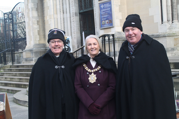 Joining Dean Stephen Forde and Bishop David McClay for a stint as Balack Santa is Belfast Lord Mayor, Councillor Tracy Kelly.